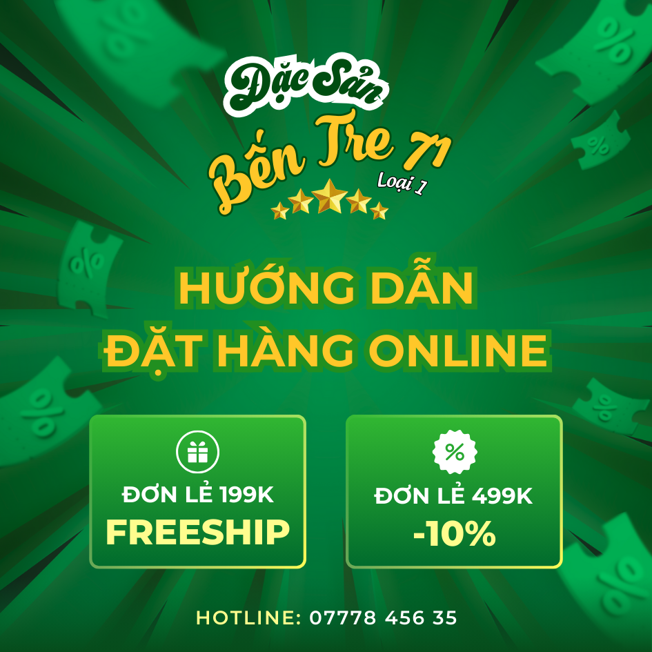 Chào mừng quý khách đến với ĐẶC SẢN BẾN TRE 71! Chúng tôi chuyên cung cấp các sản phẩm đặc sản Bến Tre chất lượng cao, đảm bảo hương vị truyền thống và an toàn thực phẩm. Để giúp quý khách dễ dàng đặt hàng, chúng tôi cung cấp hướng dẫn chi tiết dưới đây.