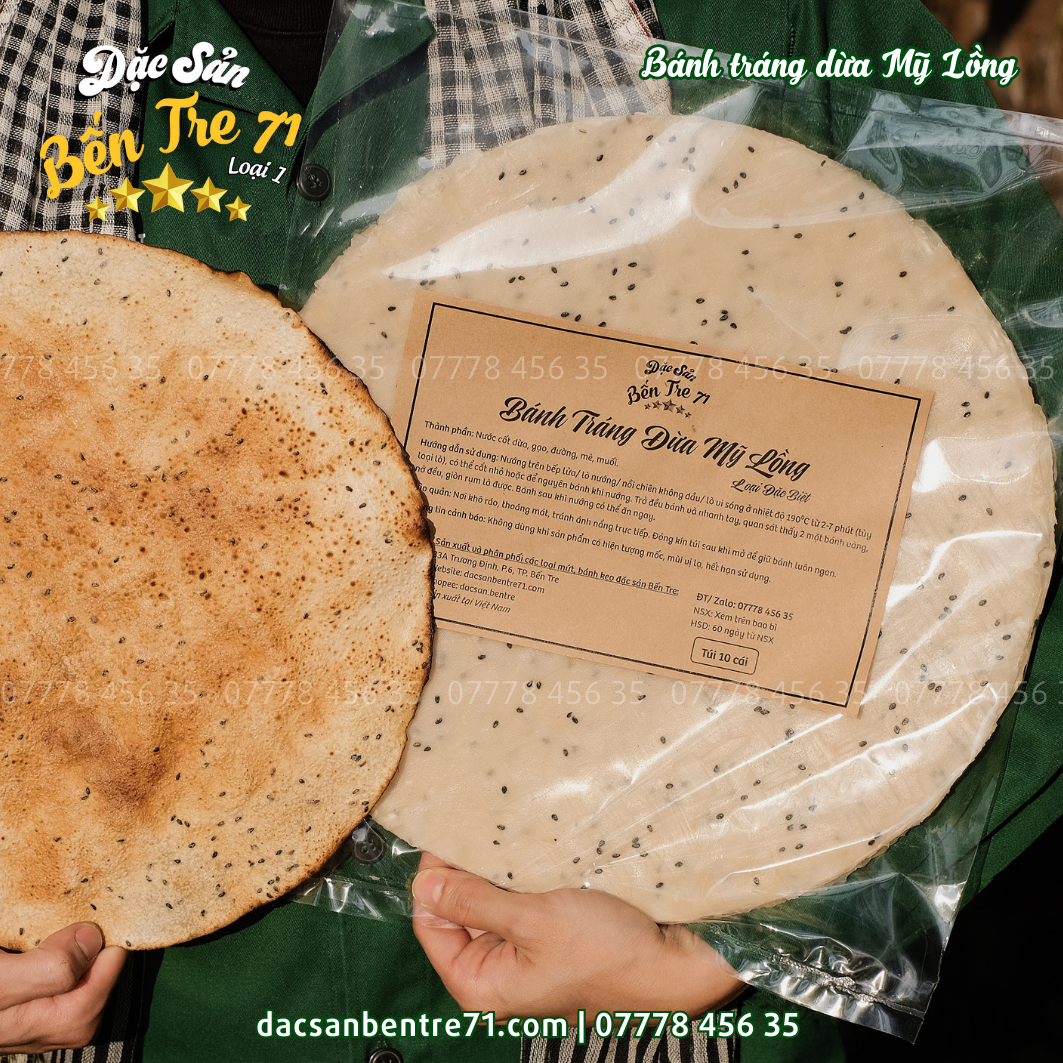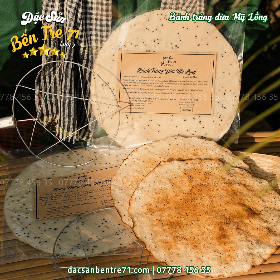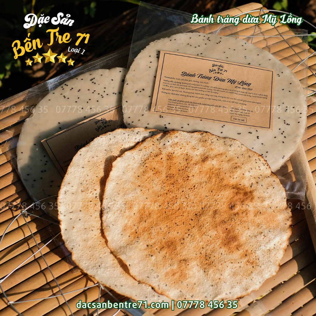 Sản phẩm bánh tráng dừa Mỹ Lồng từ Đặc Sản Bến Tre 71 đảm bảo: