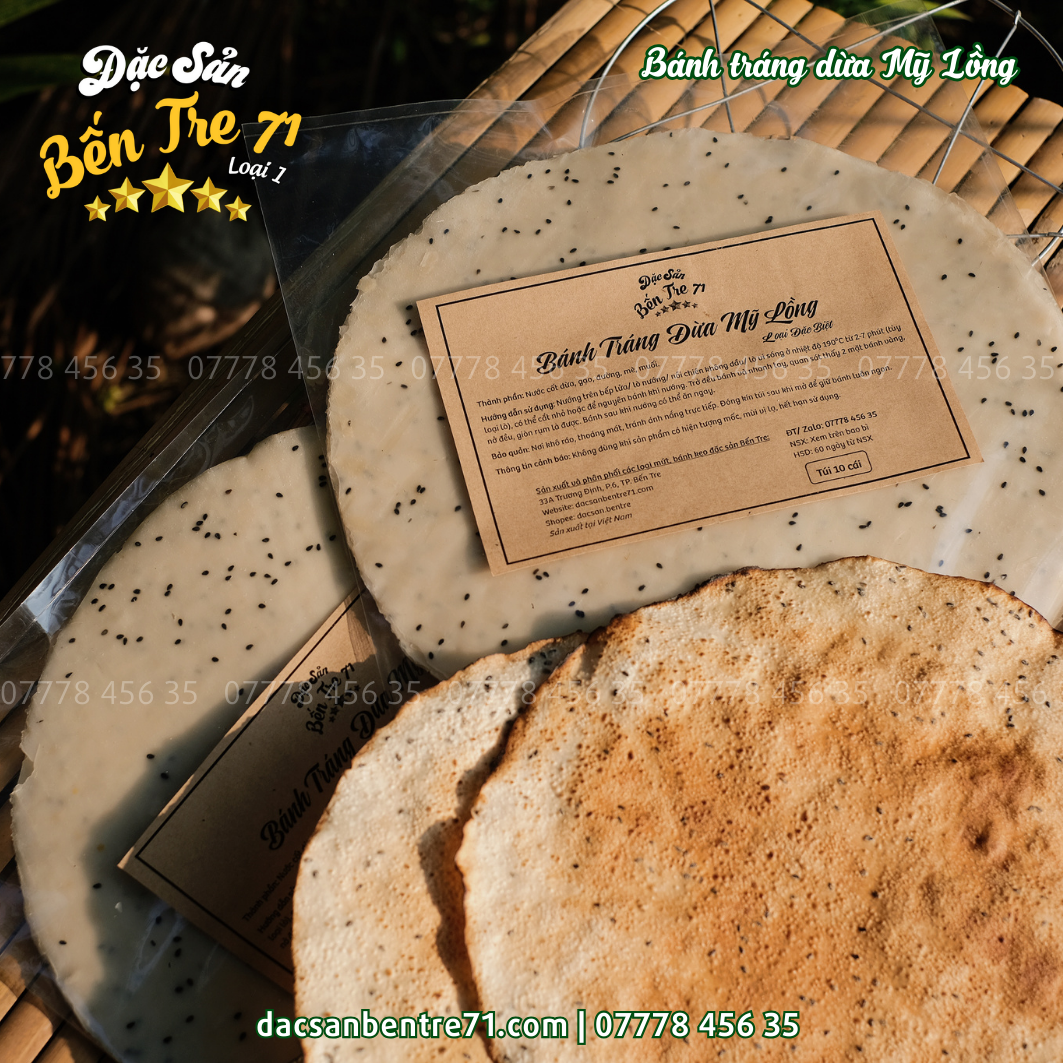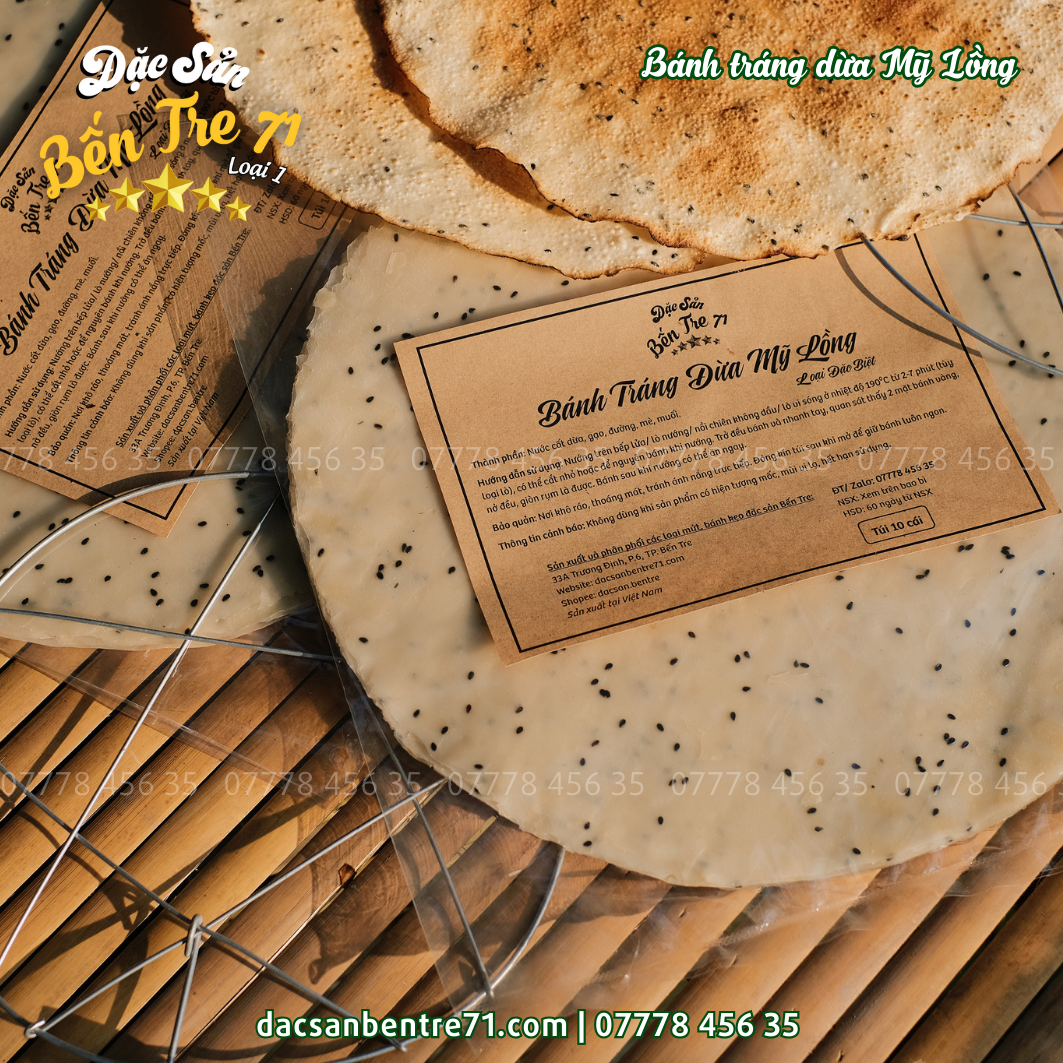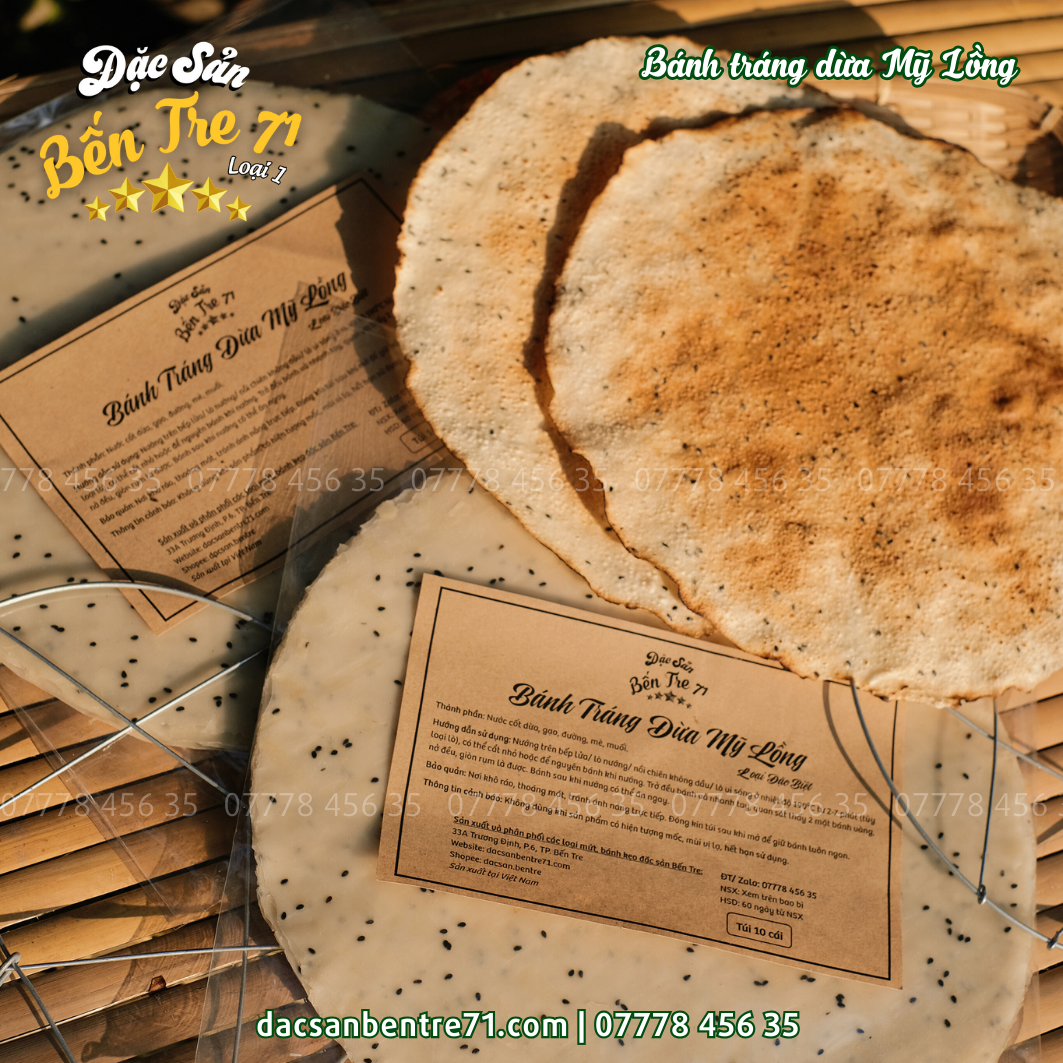 Sản phẩm bánh tráng dừa Mỹ Lồng từ Đặc Sản Bến Tre 71 đảm bảo: