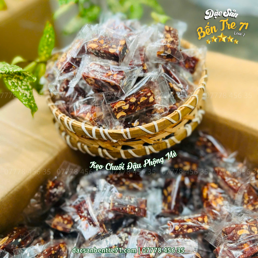 📌 Đặt hàng ngay tại Đặc Sản Bến Tre 71 để tận hưởng hương vị kẹo chuối đậu phộng mè thơm ngon, dẻo mềm, đúng chất đặc sản Bến Tre.