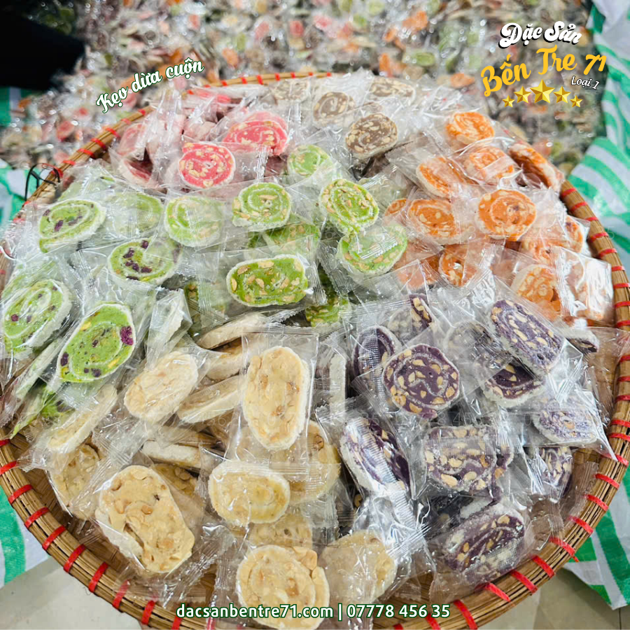 Kẹo dừa cuộn mix vị không chỉ là một món ăn vặt hấp dẫn mà còn là sản phẩm tiêu biểu của nghệ thuật chế biến từ dừa của người dân Bến Tre. Với sự kết hợp hài hòa giữa cơm dừa non tươi, đường, và các hương liệu tự nhiên, kẹo dừa cuộn mix vị mang đến hương vị phong phú và mới mẻ cho người thưởng thức.