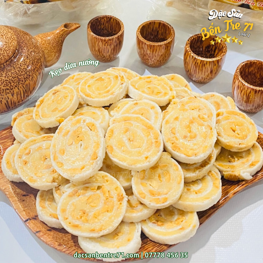 - Dừa: Được chọn lọc từ những trái dừa non tươi ngon, mang lại vị béo ngậy và thơm lừng sau khi nướng.
