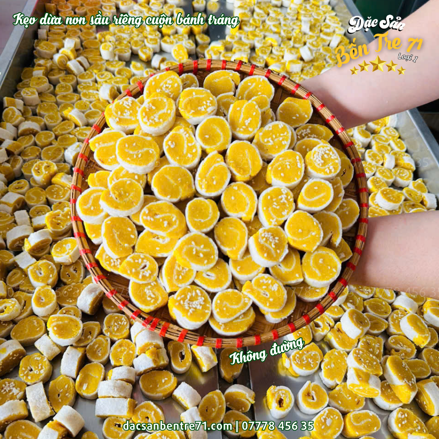 Mua kẹo dừa non sầu riêng cuộn bánh tráng ở đâu?