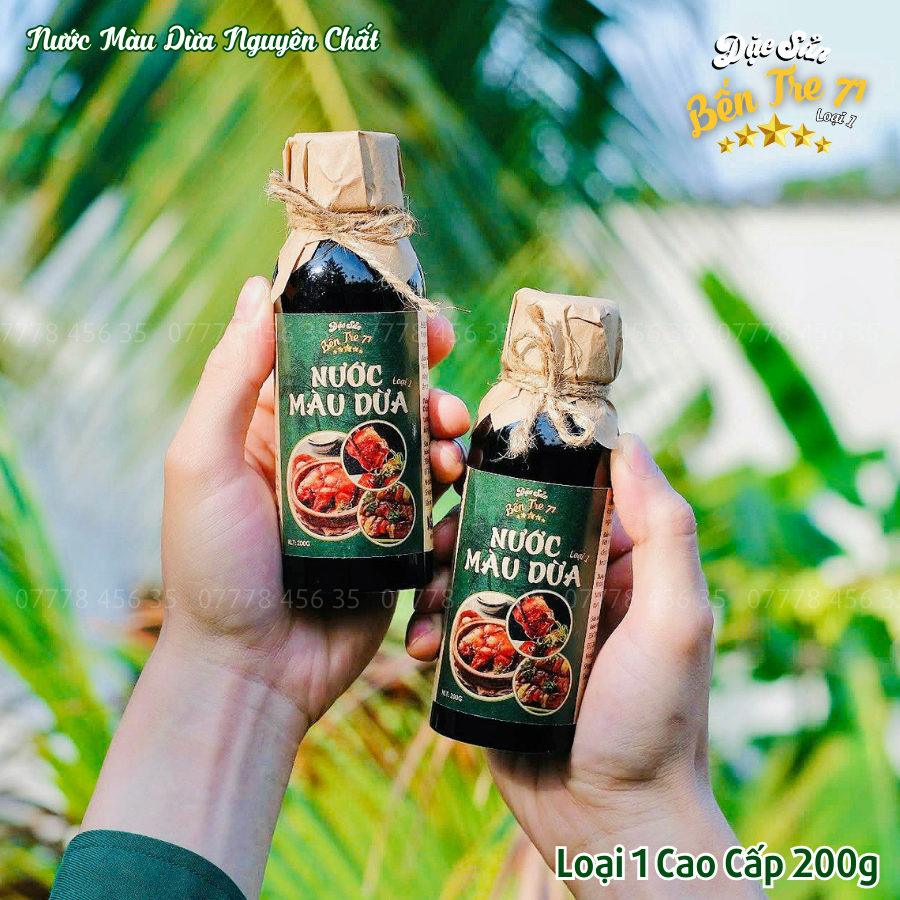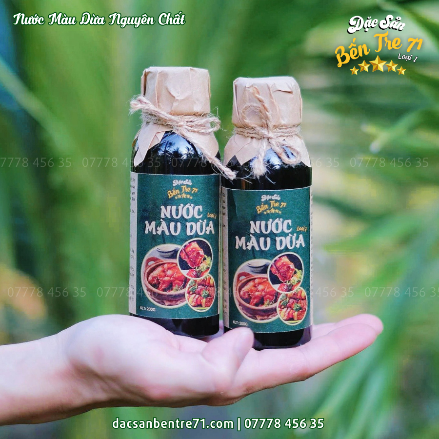 Nước màu dừa nguyên chất từ Đặc Sản Bến Tre 71 được sản xuất hoàn toàn từ nước cốt dừa tươi, không pha lẫn phụ gia hay hóa chất. Những trái dừa chọn lọc đặc biệt là dừa già, có hơn 11 tháng tuổi để đảm bảo độ béo ngậy cao. Quy trình đồi nước màu hoàn toàn thủ công, gia truyền qua nhiều thế hệ, cam kết giữ trọn hương vị truyền thống của đất Bến Tre.