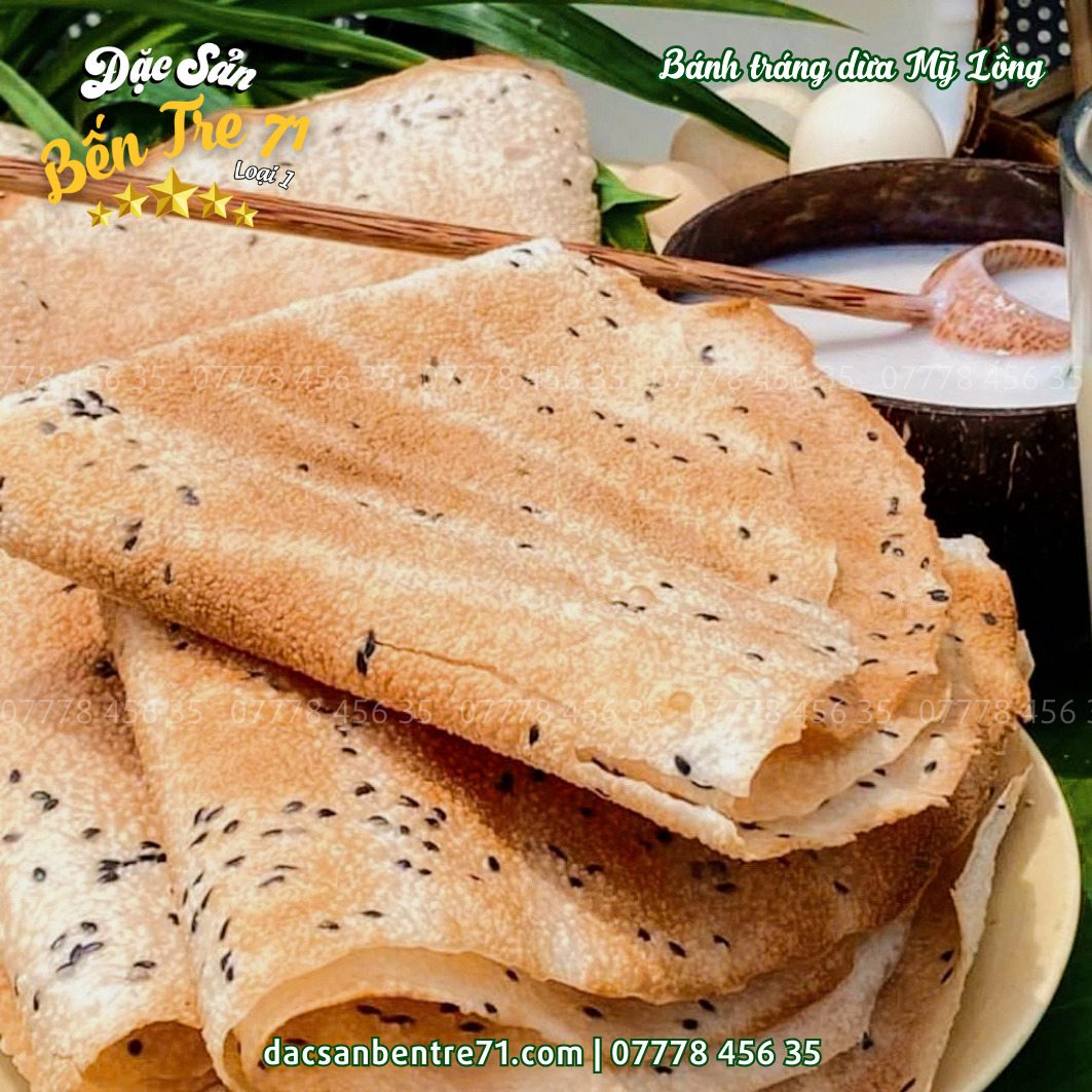 Tại Đặc Sản Bến Tre 71, bánh tráng dừa Mỹ Lồng được chọn lọc từ nguyên liệu tốt nhất, đảm bảo chất lượng loại 1. Sản phẩm không chỉ mang đến trải nghiệm ngon miệng mà còn giàu giá trị truyền thống.
