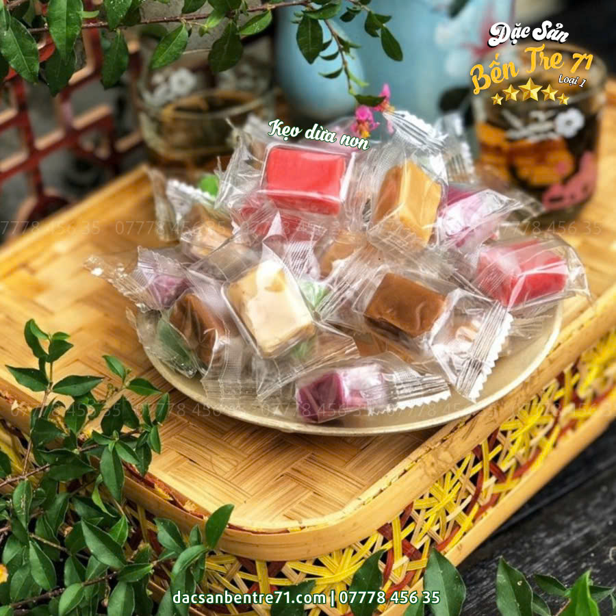 Đặc Sản Bến Tre 71 nổi tiếng với các sản phẩm kẹo dừa và mứt dừa non dẻo, mang lại hương vị đặc trưng và chất lượng cao. Những sản phẩm này không chỉ ngon miệng mà còn là món quà ý nghĩa dành tặng người thân, bạn bè trong các dịp đặc biệt.