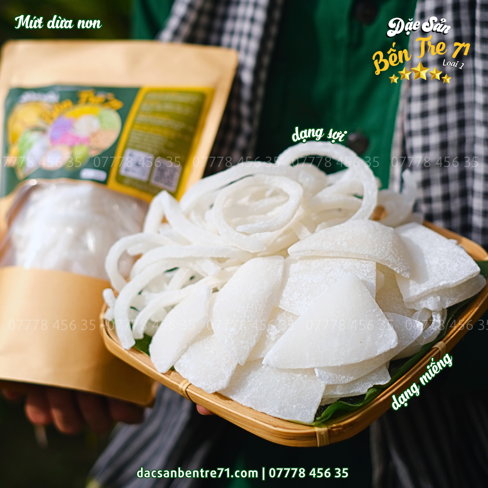 - Chất lượng sản phẩm: Đảm bảo mứt dừa non được làm từ nguyên liệu tươi ngon, không chứa chất bảo quản và an toàn vệ sinh thực phẩm.